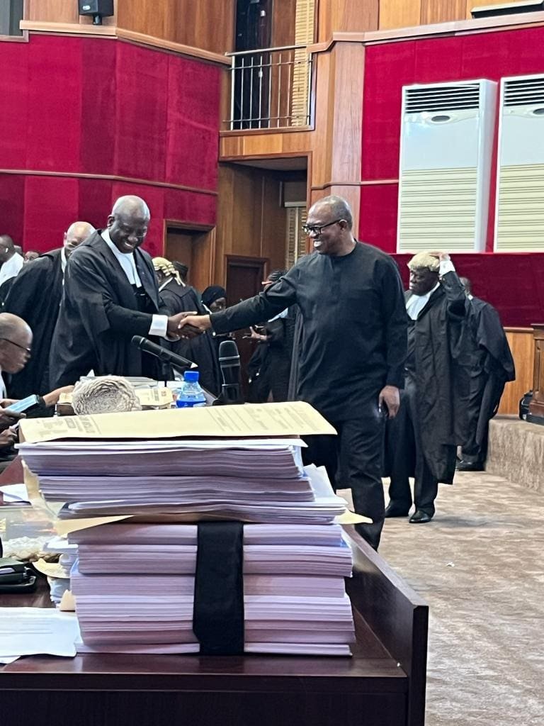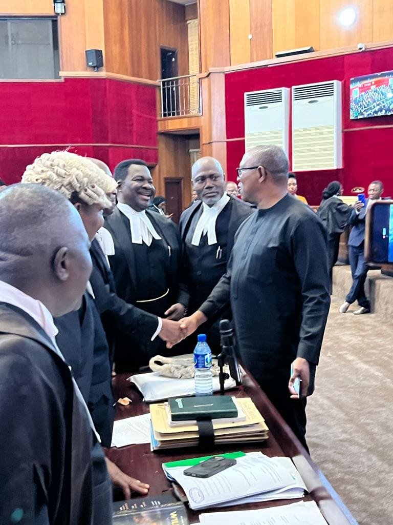The presidential candidate of the Labour Party, Peter Obi arrived at the presidential election petition tribunal hearing.