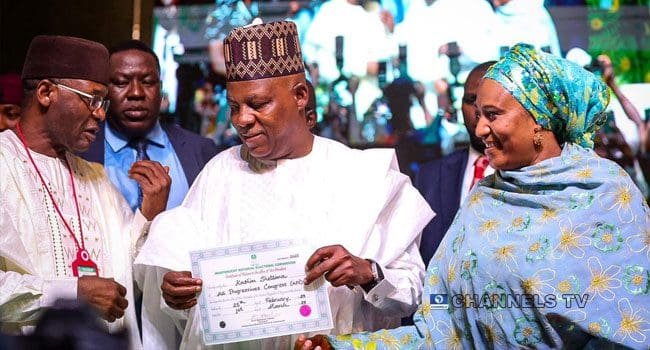 His running mate Kashim Shettima also got his certificate of return at the event.